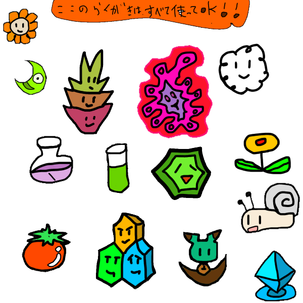 | 名前 | 素材イラスト集(14種) |